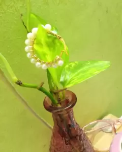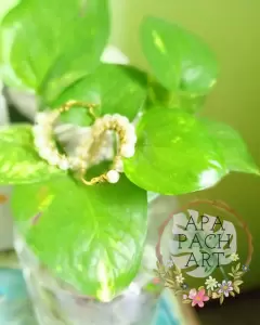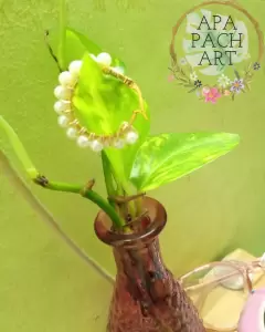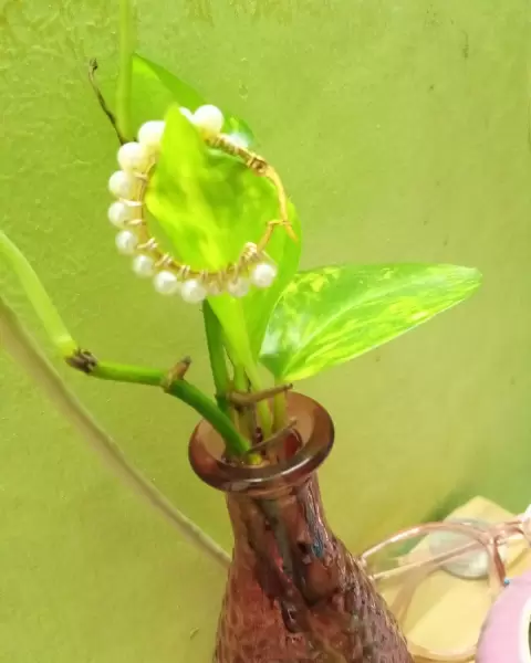 Aretes tipo arracadas hecho a mano con piedra tipo perla.