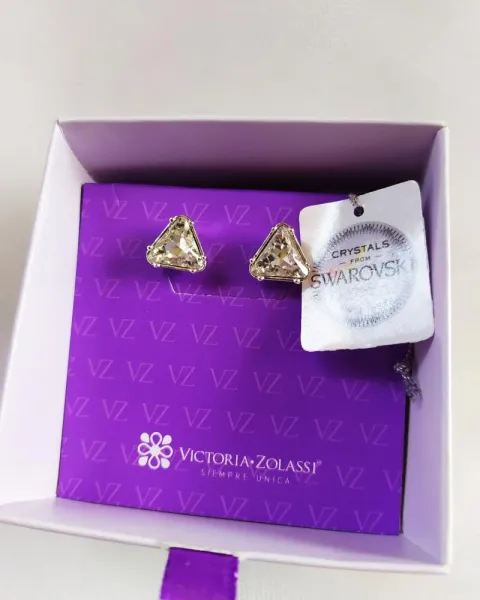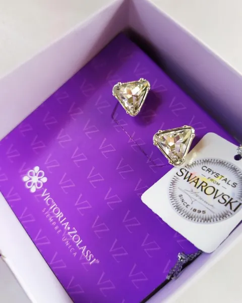 Aretes Victoria Zolassi X Swarovski. Aretes en forma piramidal. Baño de plata con cristales Swarovski. Originales.