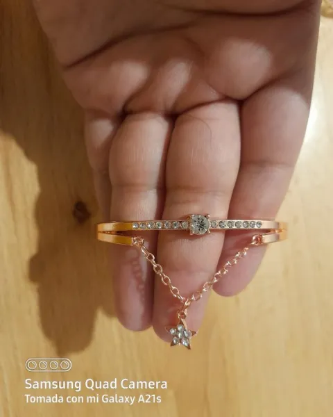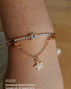 Hermoso brazalete con pedrería en la parte de la pulsera y la estrella, en las fotos no se aprecia bien pero brilla súper padre, tono rosegold, nuevo!!