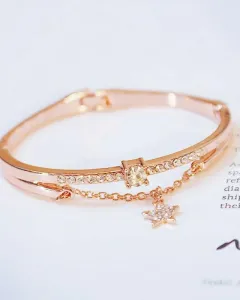 Brazalete con pedrería. Hermoso brazalete con pedrería en la parte de la pulsera y la estrella, en las fotos no se aprecia bien pero brilla súper padre, tono rosegold, nuevo!!