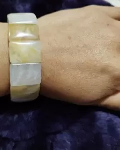 Brazalete esmaltado, onix y concha nácar. Brazalete verde esmaltado, ha estado guardado bastante tiempo en espera de acompañarte en tu día a día. Se uso un par de ocasiones, estan en excelente estado. El brazalete es de metal esmaltado, no se despinta ni bota el esmalte...esta muy lindo!!