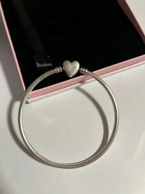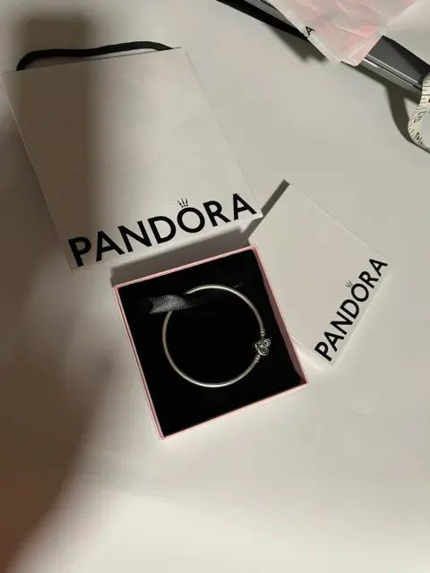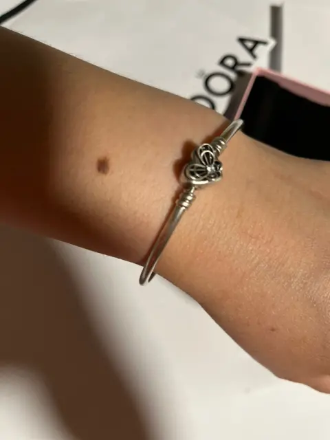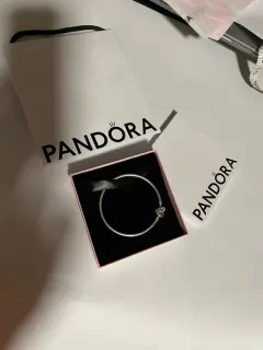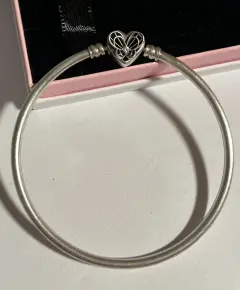 Brazalete rígido Pandora original .Usado varias veces (se encuentra en perfectas condiciones para su uso)Se perciben rayones propios del uso y haber sido limpiadas.El broche en perfectas condiciones.Incluye:Caja originalShopping bag originalTalla 19 (19cm)