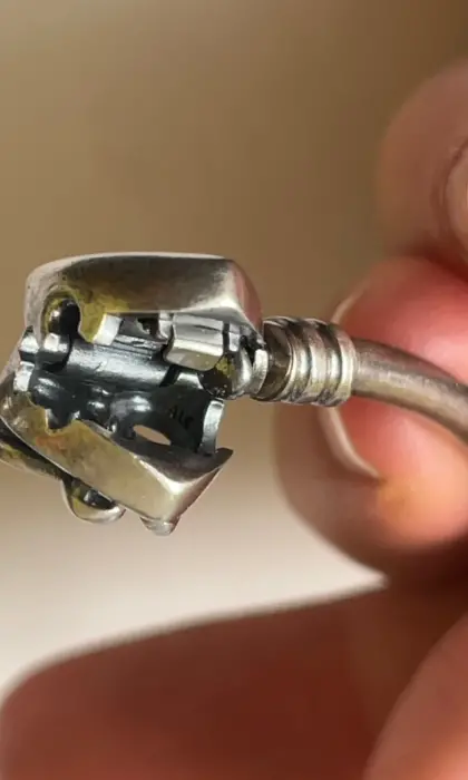 Brazalete Pandora. Brazalete rígido Pandora original .Usado varias veces (se encuentra en perfectas condiciones para su uso)Se perciben rayones propios del uso y haber sido limpiadas.El broche en perfectas condiciones.Incluye:Caja originalShopping bag originalTalla 19 (19cm)
