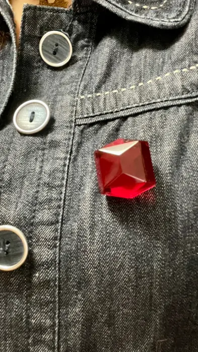 Broche rojo para destacar más tu outfit, en forma de gema. Es de resina, hecho a mano, marca Gemistry y base plateada de bisutería (aleación de metales). Incluyo siempre regalito con el paquete ;)