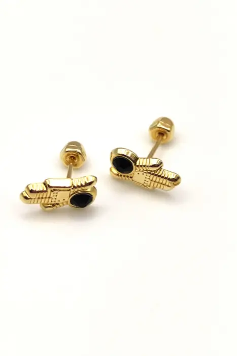 Broquel Astronauta oro 10k. Broquel AstronautaOJO SON MUY PEQUEÑOSOro solido 10 kLa pieza mide de alto 8 mm x 5 mm anchoEl broche es de bolita que se enroscaLas fotos son realesLos aretes funcionan para bebe, niña o adulto*NO CHAPA, NO ORO LAMINADO, NO BAÑO DE ORO*