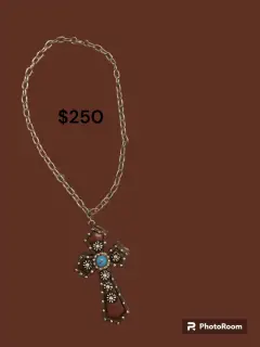 Hermoso collar con cruz de pasta grande única y original pieza