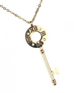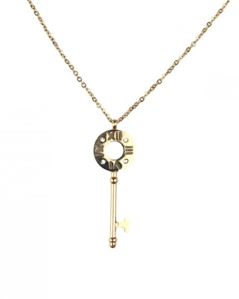 Cadena con dije llave y aretes. Bonito dije de llave con grabado de números romanos y cristales, incluye aretes todo el juego es de acero inoxidable.