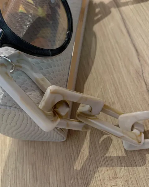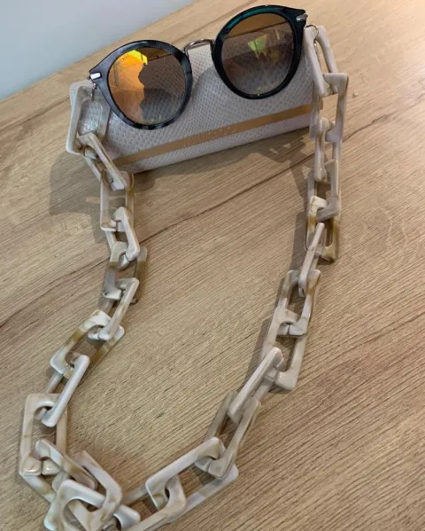 Cadena para lentes o cubrebocas. Cadena de acrílico grueso para lentes o cubrebocas, también puede usarse como collar, nueva, tiene broches y gomas para usarse ya sea con cubrebocas o lentes