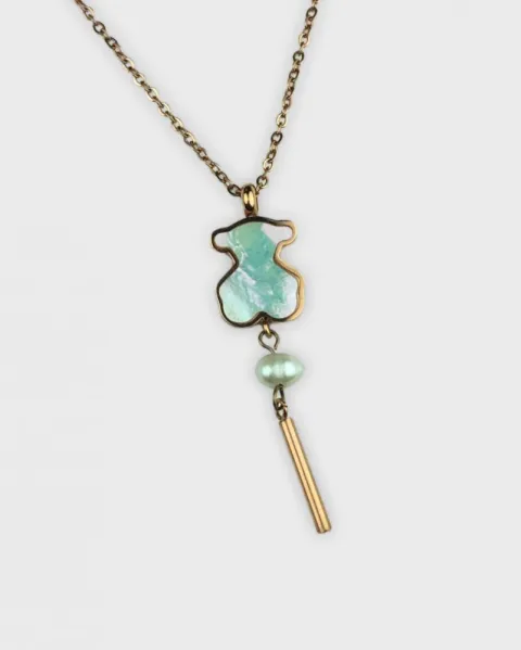 Cadena y aretes de osito nacarado. Lindo juego de dije con cadenita y aretes en forma de ositos con fondo nácar en acero inoxidable.