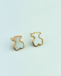 Lindo juego de dije con cadenita y aretes en forma de ositos con fondo nácar en acero inoxidable.