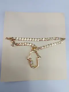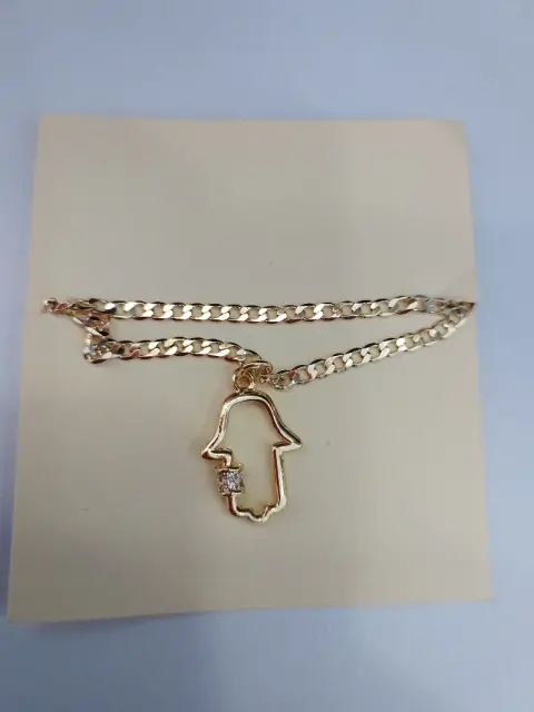 Cadena y dije mano de Fatima chapa de oro de 14 k