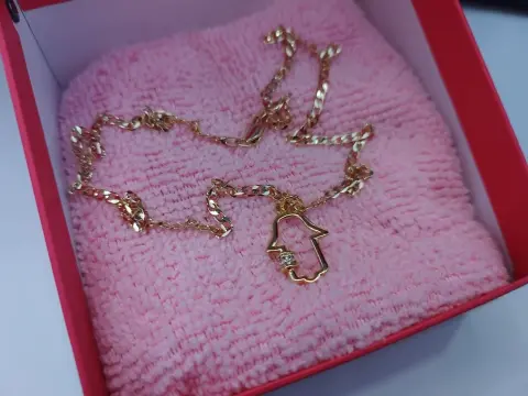 Cadena y dije mano de Fatima chapa de oro de 14 k. Chapa de oro 14 kilatesExcelente calidad Cadenita + dije 45 cm de largo