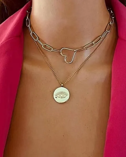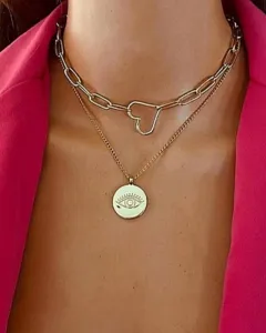 Collar 2 layers corazon contorno/ moderna enchapado excelente calidad nuevos sin detalles disponibles