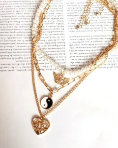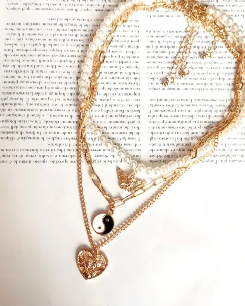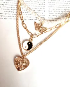Collar 3 layers enchapado Ying Yang. Collar 3 layers enchapado Ying Yang, perlas, dije de ángel y dije de corazon excelente calidad sin detalles nuevo enchapado