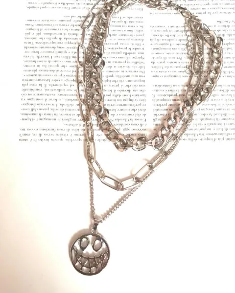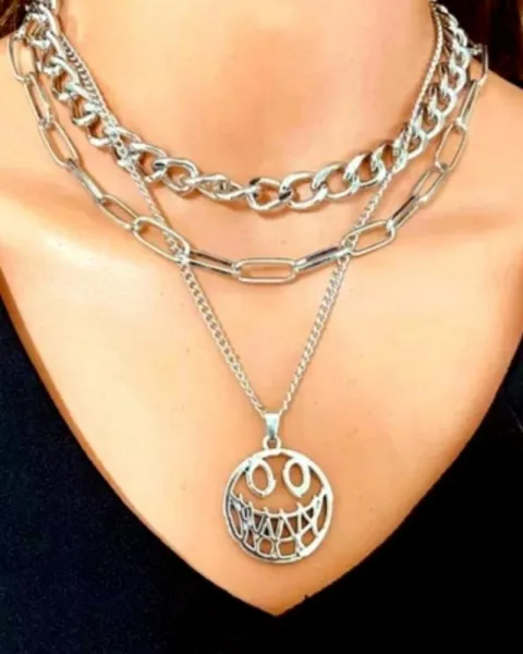Collar 3 layers plateado SCARY baño antioxidante eslabones de diferentes tamaños dije de contorno excelente calidad sin detalles nuevo disponible