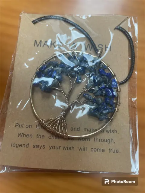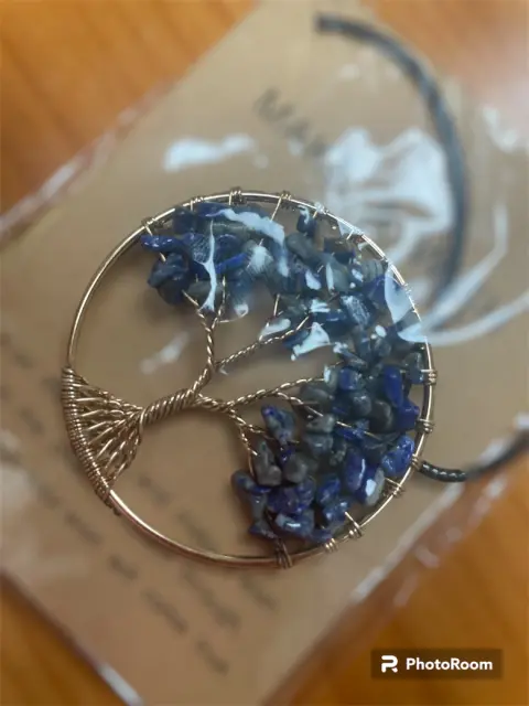 Collar árbol de la vida con cuarzo azul (zafiro).Acero inoxidable.Producto Nuevo - Ningún Detalle