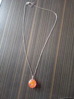 Es un collar de resina en su dije encapsulado de naturaleza muerta