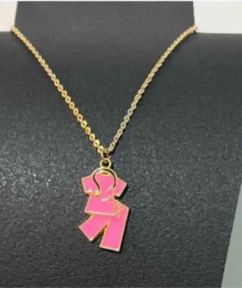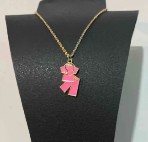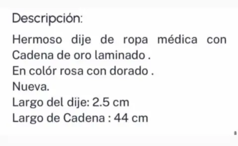 Collar con dije rosa ropa médica. Hermoso dije con Cadena de forma de ropa médica , color rosa .Dije metálico esmaltado .Caldera oro laminado.Nuevo 🏷Muy bonito excelente opción para regalo .
