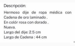 Hermoso dije con Cadena de forma de ropa médica , color rosa .Dije metálico esmaltado .Caldera oro laminado.Nuevo 🏷Muy bonito excelente opción para regalo .