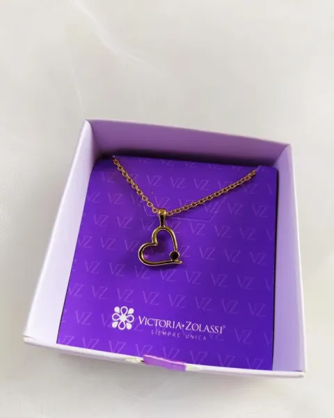 Collar con dije en forma de corazón. Marca Victoria Zolassi. Tiene baño de oro de 18K. No se oscurece.