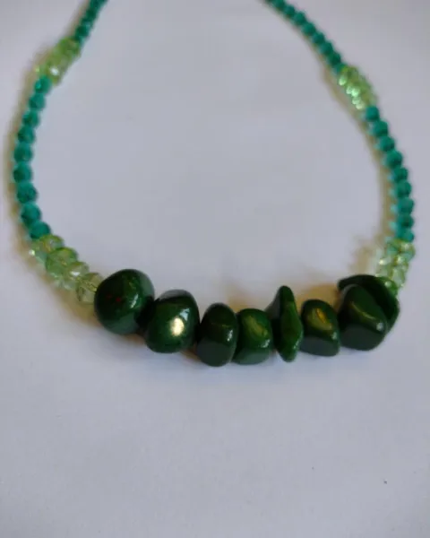 Collar cristal Verde. Collar hecho a mano de cristal y piedra, es único ya que solo hice este modelo. Se ve increíble 😍