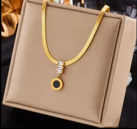 Precioso collar de acero inoxidable con colgante que tiene grabados números romanosCompletamente nuevo