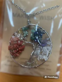 Collar árbol de la vida con diferentes cuarzos : blanco / ahumado / prasiolite / zafiro / amatista.Acero inoxidable.Producto Nuevo - Ningún Detalle