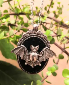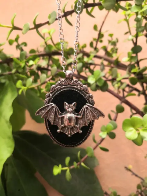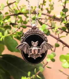 Collar de camafeo con murciélago. Bisutería (aleación de diversos metales)Terciopelo Cadena largaTamaño grandeAplicación de Murciélago 🦇No mojar