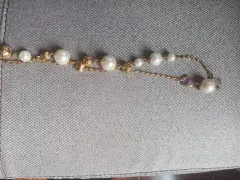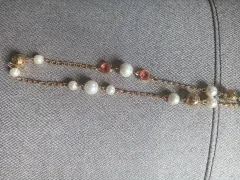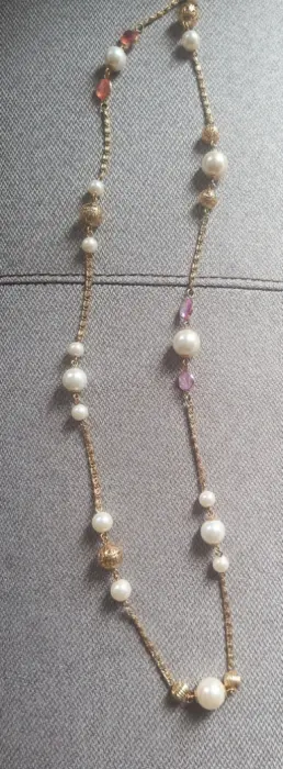 Collar de fantasía, realmente hermoso, con perlas, piedras naranja y morada