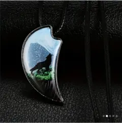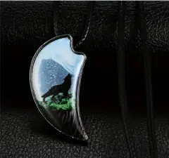 Un collar muy hermoso de hombre lobo, estilo Retro y antiguo, la cadena es de cuero y es unisex.