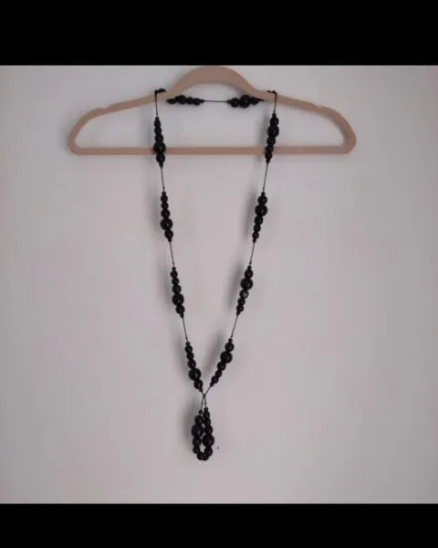 Collar de madera negro. ♠️Black is always right!Collar de madera pintada de negro, va acompañada de accesorios de cabello (un moño de perlas negras con liga) y una esfera de chaquira negra con liga.Medidas:Collar 66cm