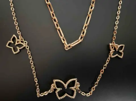 Collar con dijes de mariposa, en color dorado y muy bonito diseño. De la marca cyzone. Completamente nuevoPrecio de catálogo y tienda en línea $300