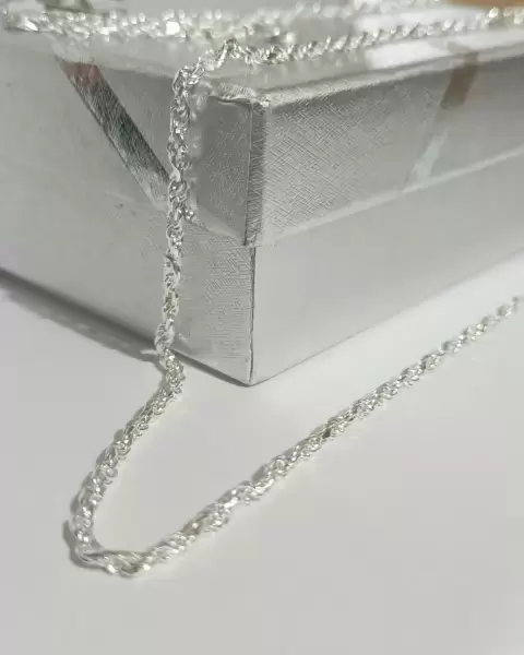 Collar de plata ley 925 tipo torniqueteMide 52 CM de largoLa plata esterlina, o plata de ley es una aleación de plata que contiene 92.5% por peso de plata y 7.5% por peso de otros metales.