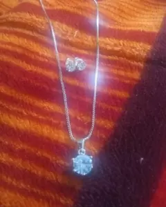 Cadena de plata esterlina de 45 cmDije de zirconia de 1 cm X 1cm1 par de aretes zirconia (hacen juego con el collar)No se despintan ni se hacen feos con el usoCompletamente nuevo