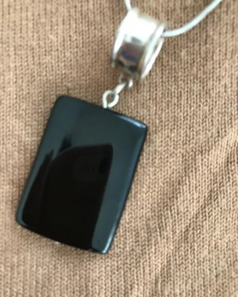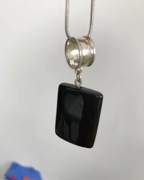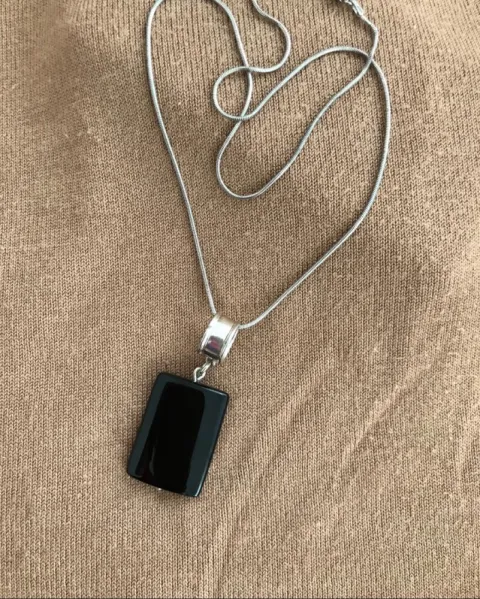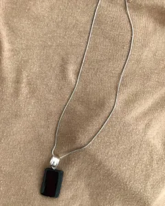 Elegante combinación negro y plata. La cadena mide 51cms, el dije con todo y argolla de plata (Quintados)mide 5.5 de alto y cristal 1.8 de ancho. Buena calidad. NO SHEIN, WISH