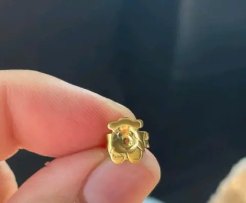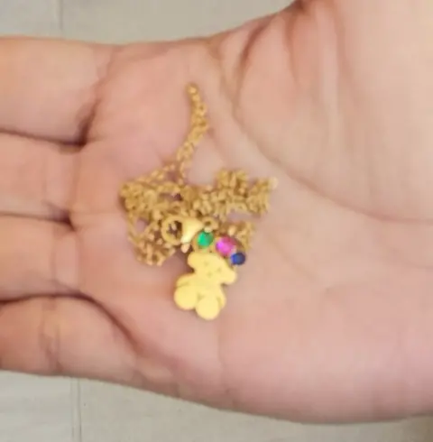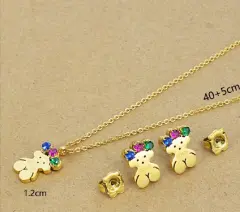 Juego de collar, dije y aretes de acero inoxidable color dorado, nuevo sin etiqueta, sin ningún detalle, se ve muy bonito.