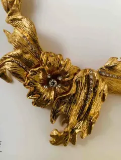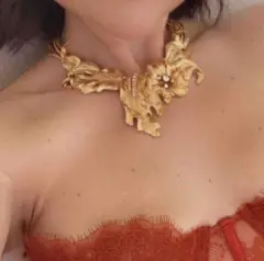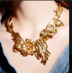 Nunca hay un outfit completo si no tiene sus accesorios!! NUEVO!! En flores doradas y hojas. Hermoso, no le falta ninguna piedrita a los pistilos de las flores. Viene asegurado a su carton como garantia de que es nuevo. Lo puedes usar por debajo de una camisa blanca o negra para un look elegante. este accesorio le da un toque sofisticado a tu outfit. Para mas opciones visita mi closet. No mascotas