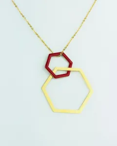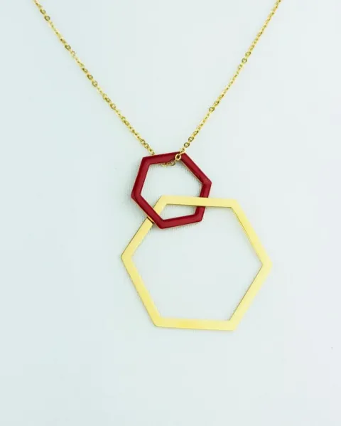 Collar exagonos rojo y dorado. Cadenita con dijes hexagonales en linda combinación de rojo y dorado, en acero inoxidable.