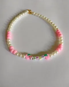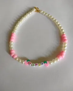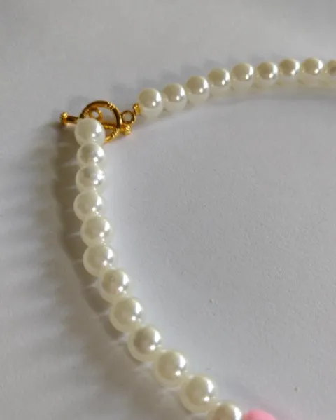 Collar corto hecho a mano, única pieza, nuevo, con perlas de imitación, se ve muy lindo.