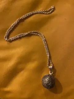 Collar llamador de ángeles Plata 925. Collar de Plata 925 llamador de ángeles, con diseño de las pirámides de Teotihuacán y calendario azteca