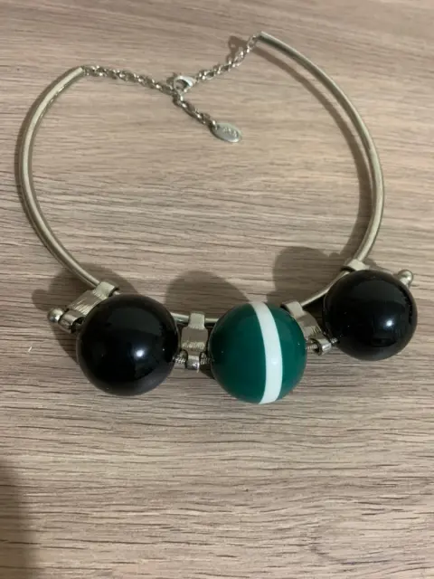 Collar Mango. Gargantilla con bolas negras y verde marca Mango