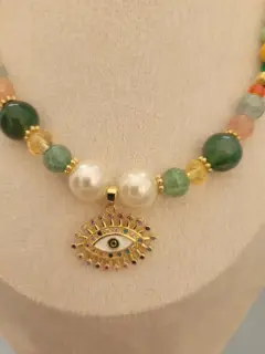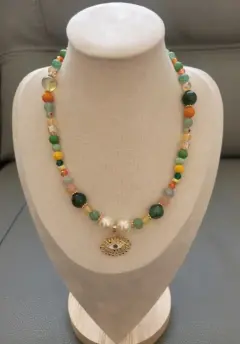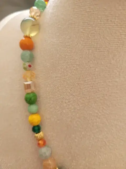 Collar multicolor cristales. Hermoso collar en cristales multicolor y cuentas y separadores en acero inoxidable color dorado, hermoso dije de acero inoxidable con pequeños cristales multicolor