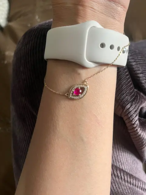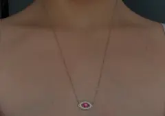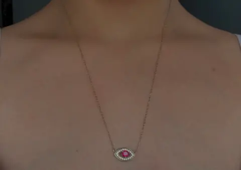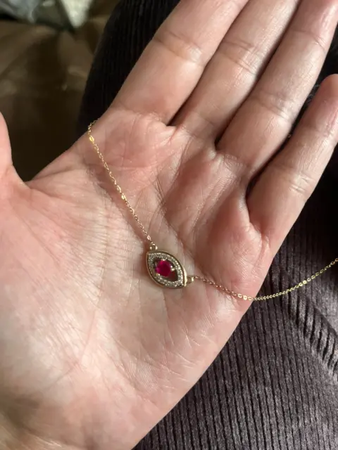 Collar Oro 10k. Collar hermoso de ojo turco con piedra rosa