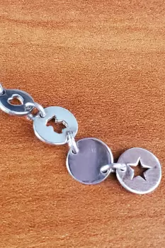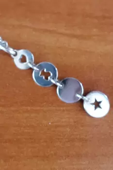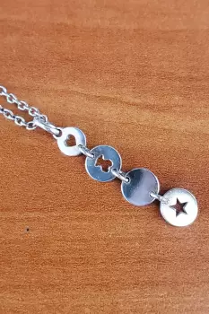 Bonito collar de la marca Tous en plata .925 , cuatro discos , 3 con las formas mas distintivas de la marca , es seminuevo en buen estado, mide 25cm de largo incluyendo el dije y con la cadena cerrada. Se envía en su costalito y con copia del certificado de autenticidad.
