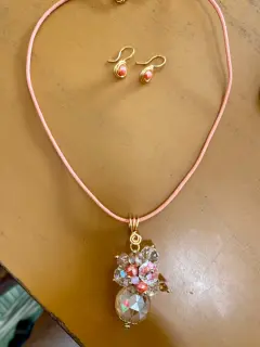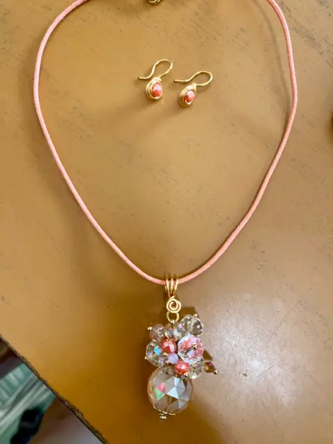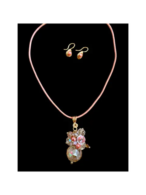 COLLAR Y ARETES. Cristales, correa, incluye aretes! Nuevos y sin detalles!!