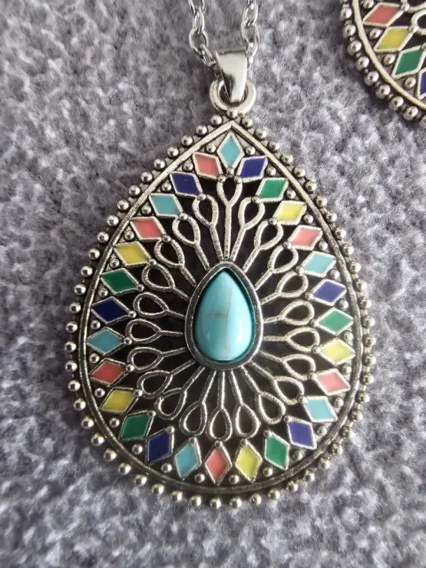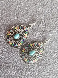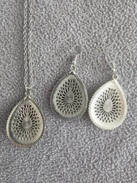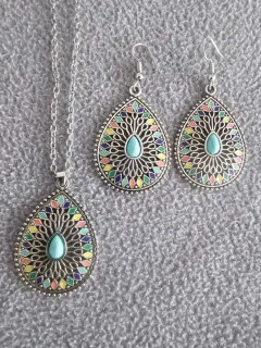 COLLAR Y ARETES BOHO. Conjunto de collar y aretes en forma de gota ultra ligeros.Material: MetalTamaño cadena: 40 cm ajustable a 45 cmTamaño de dije: 4.5 cmTamaño de aretes: 4.5 cmSe entrega en bolsa de organza tipo costal.Ideal para regalo 🎁