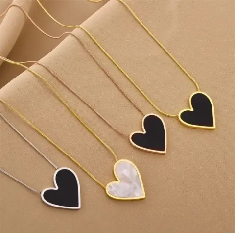 Elegante collar de acero titanio con dige de corazón, enchapado mide 15 cm