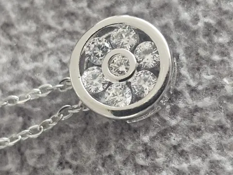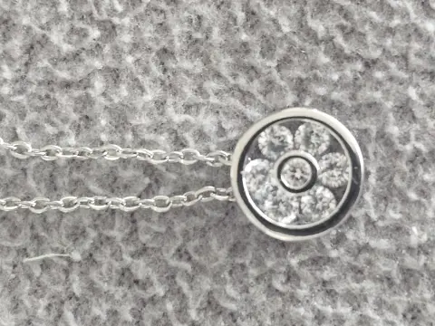 DIJE DE FLOR. Dije de flor circular.Se puede retirar de la cadena.Material: Metal con pedrería.Tamaño cadena: 40 + 5 cmTamaño dije: Diámetro aprox. 0.7 cmSe entrega en bolsa de organza tipo costalito.Ideal para regalo 🎁Si te gusta otra pieza de mi colección avísame y te armo paquete 😉