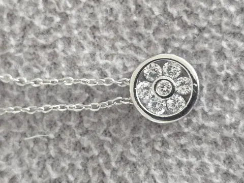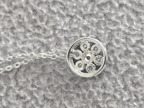 Dije de flor circular.Se puede retirar de la cadena.Material: Metal con pedrería.Tamaño cadena: 40 + 5 cmTamaño dije: Diámetro aprox. 0.7 cmSe entrega en bolsa de organza tipo costalito.Ideal para regalo 🎁Si te gusta otra pieza de mi colección avísame y te armo paquete 😉