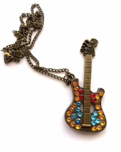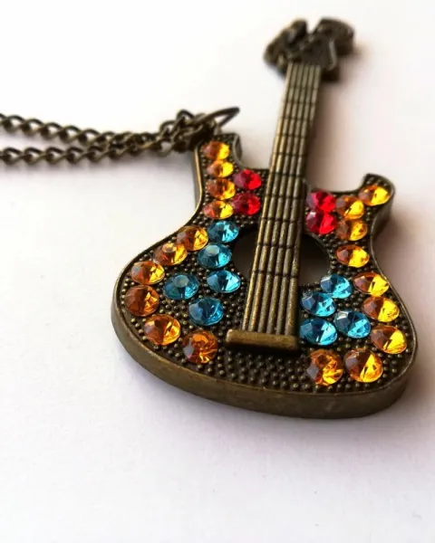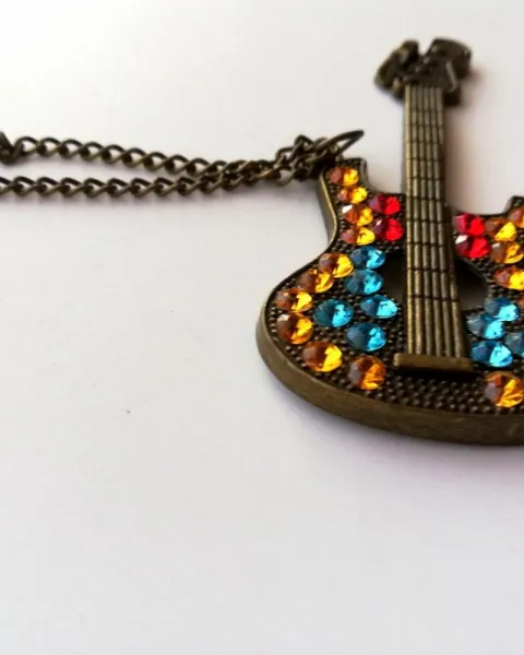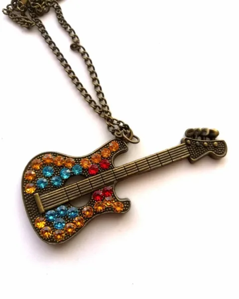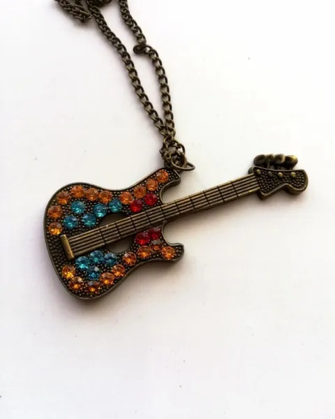 Dije guitarra pedrería. La guitarra tiene un tamaño de 8.5 cm, no le hace falta ninguna piedrita.